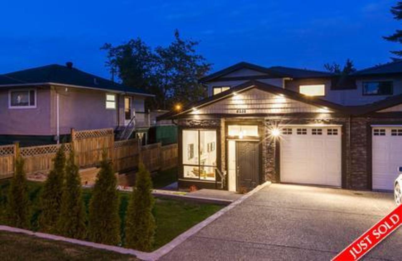 Come home to this fabulous executive duplex located in the highly sought after Burnaby Hospital neighbourhood. This one year young, 2100 SQ FT home is well appointed w/4 bedrooms 3.5 baths and large level yard. Enter the main floor and experience airy 12 ft ceilings and large LR/DR area. The gourmet kitchen features high quality finish w/white cabinets,sleek grey stone countertops, S/S appliances and undermount sink. The generous sized family leads the private yard perfect for entertaining. 3 spacious bedrooms up, plus 1 bed mortgage helper on main floor. This home is located on a quiet street 2 blks away from the Hospital, mins from HWY, shopping and Metrotown.