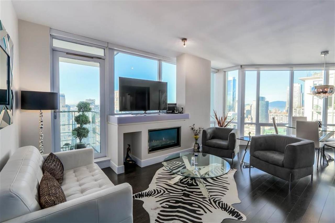 In the heart of downtown this PRIVATE COLLECTION suite at the Dolce in Symphony Place features stunning views of English Bay and downtown - watch the fireworks from your private balcony or living room! This pristine 2 BED and 2 BATH has it all, modern kitchen with stainless steel appliances, open concept living and dining with views and contemporary fireplace to keep you warm! Parking and Storage included. World class amenities in the building including indoor/outdoor children's playroom.