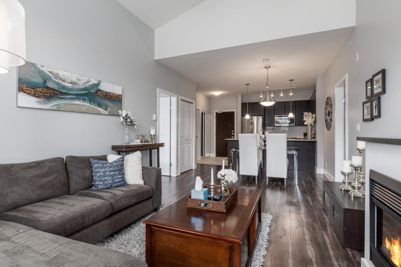Come home to this STUNNING 2 bed/2 bath PENTHOUSE at THE GROVE in VICTORIA HILL! This Top Floor unit features a fantastic open floor plan with 14' vaulted ceilings. Enjoy both form + function w/split bedrooms, lovely entertaining kitchen, imported granite countertops, upgraded wide plank hardwood flooring, premium S/S Appliance pckg & lots of cupboard/counter space. The spa-like master bath features a separate shower and lrg soaker tub! This Penthouse offers large floor to ceiling windows. Enjoy the open views overlooking GREEN SPACE & those summer BBQ's on your large covered balcony. Experience a wonderful lifestyle, surrounded by trees, stunning views & trails.