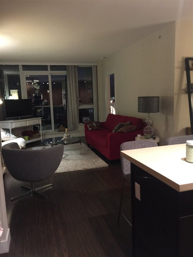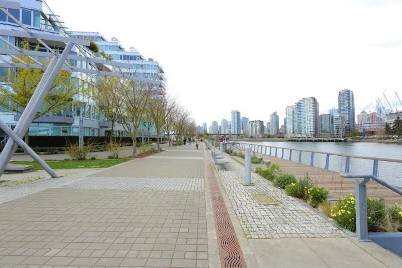 Sited in the sought after False Creek South area. This Polygon built building offers an environmentally unique design rated LEED silver. Inside layout is very functional with no space wasted. Features include high ceiling, In-suite storage, stone countertop, SS appliances, wide plank wood flooring and glass partition between bedroom and living room. Building equipped with exercise room, community garden and bike room. Steps to seawall, Canada Line, eateries and shopping.