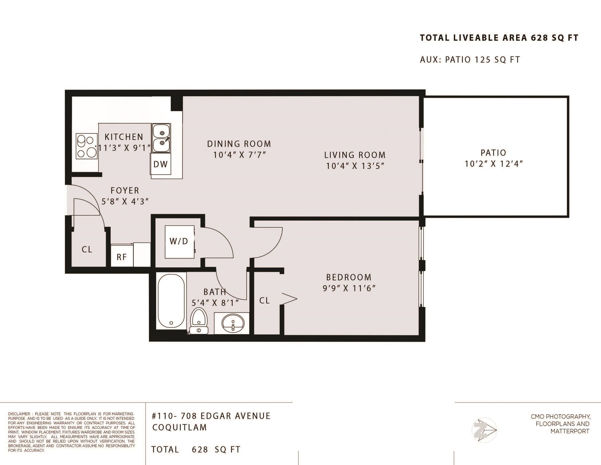 - Square Feet: 628 sqft