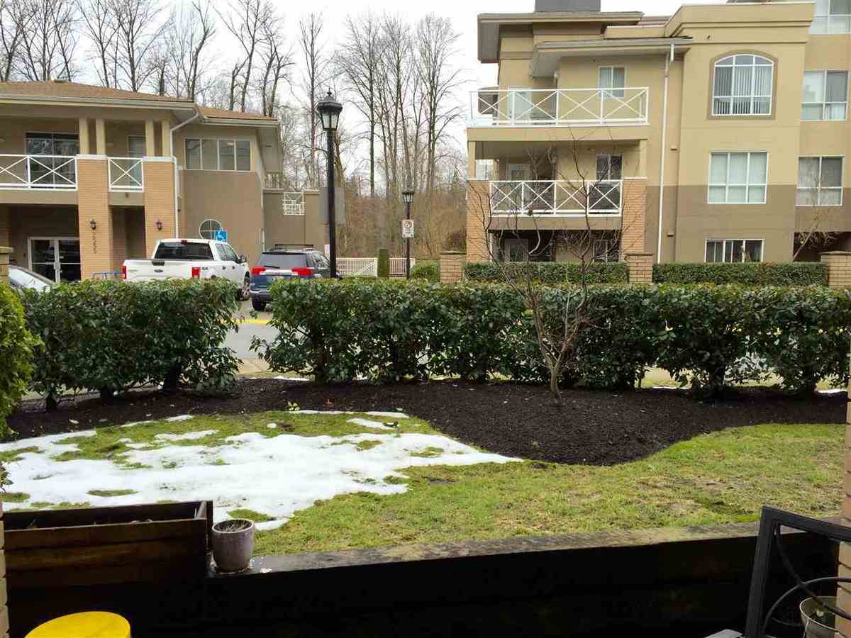 Check out this AWESOME GROUND FLOOR unit on the QUIET side of the building! In a well maintained & cared for building this unit has over 700 sqft of living space complete with a HUGE master bedroom, lots of closet space & sliding door onto your own covered patio. Features a cozy gas fireplace (included in maintenance) along with updated laminate flooring, paint & Island w/granite countertop. Come with 1 parking & storage plus exercise & party rooms. Quick & Easy access onto lougheed hwy. Westcoast Express and tons of walking trails and parks close by.